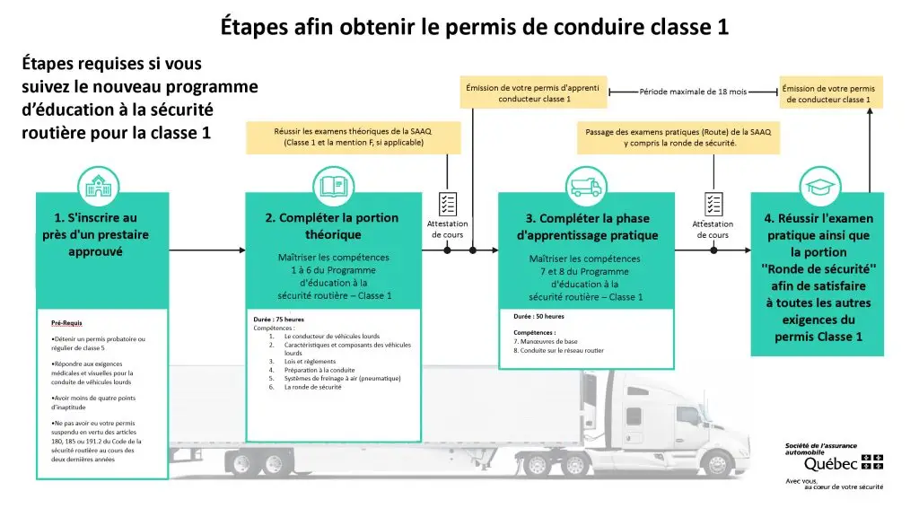 INFORMATIONS AU SUJET DU PROGRAMME DE COURS DE CAMION CLASSE 1